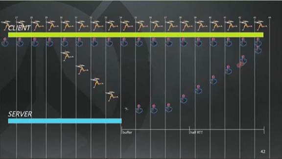 一旦这个缓冲区是空的,服务器只能根据你最后一次输入去“猜测”。等到真正的输入到达时,它会试着“缓和”,确保不会弄丢你的任何操作,但是也会有预测错误。