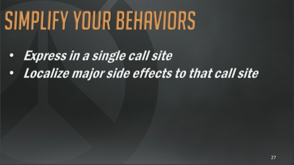 这次分享的一些技术,是用来降低不停增长的代码库的复杂度(译注,代码复杂度的概念需要读者自行查阅)。为了达到这个目的我们遵循了一套严谨的架构。最后会通过讨论网络同步(netcode)这个本质很复杂的问题,来说明具体如何管理复杂性。