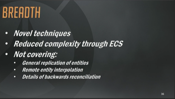 这里不会涉及到通用的数据复制技术、远端实体插值(remote entity interpolation)或者是向后缓和(backwardsreconciliation)技术细节。