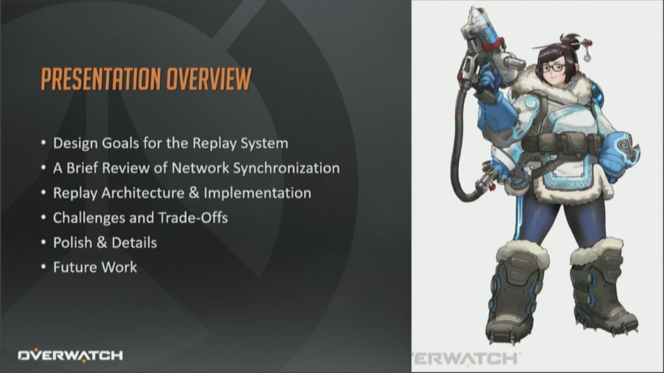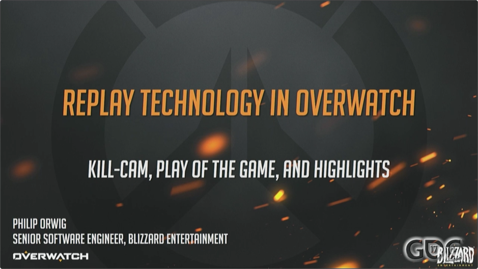欢迎来到”守望先锋”(下文统称Overwatch) 回放技术分享,今天的内容包括阵亡镜头、全场最佳和亮眼表现。我是Phil Orwig,是Overwatch服务器团队开发工程师。