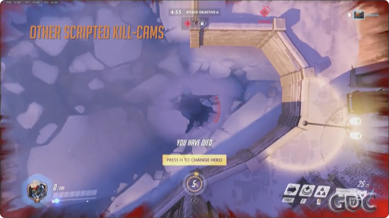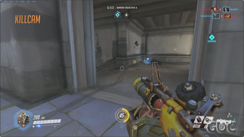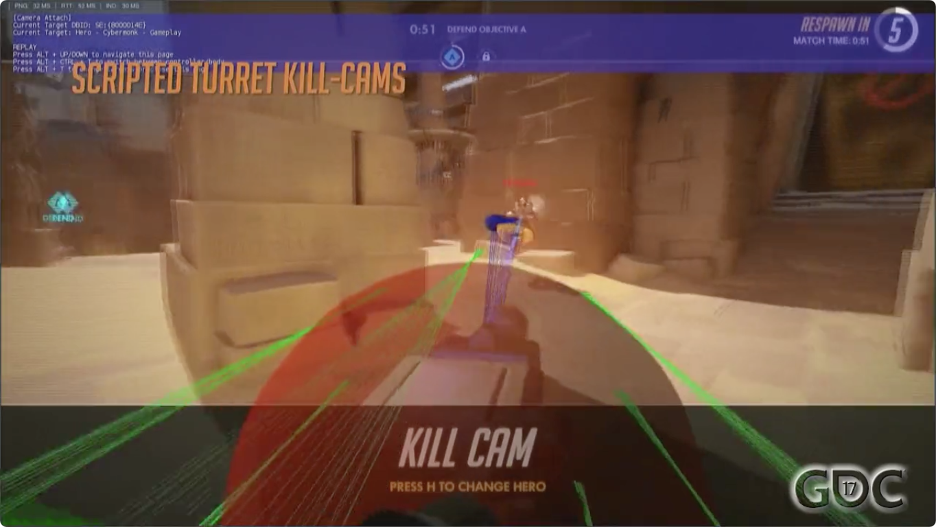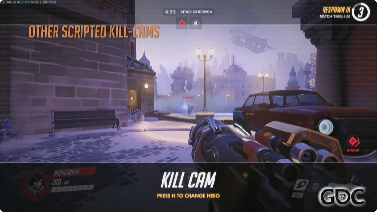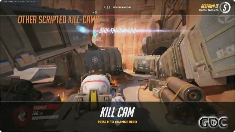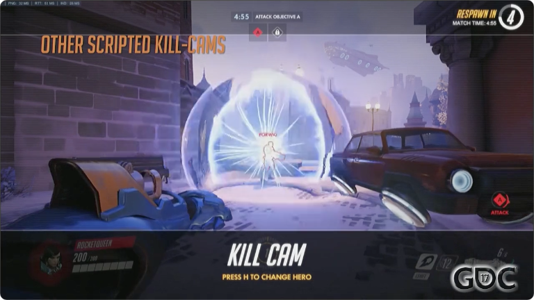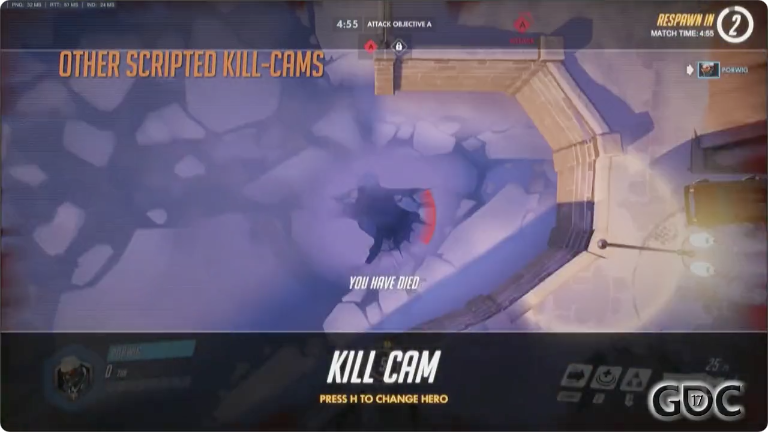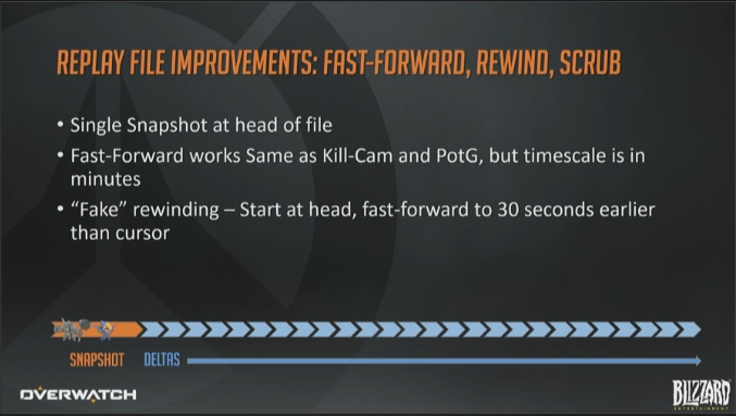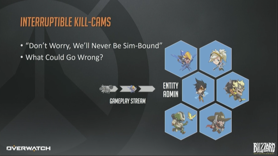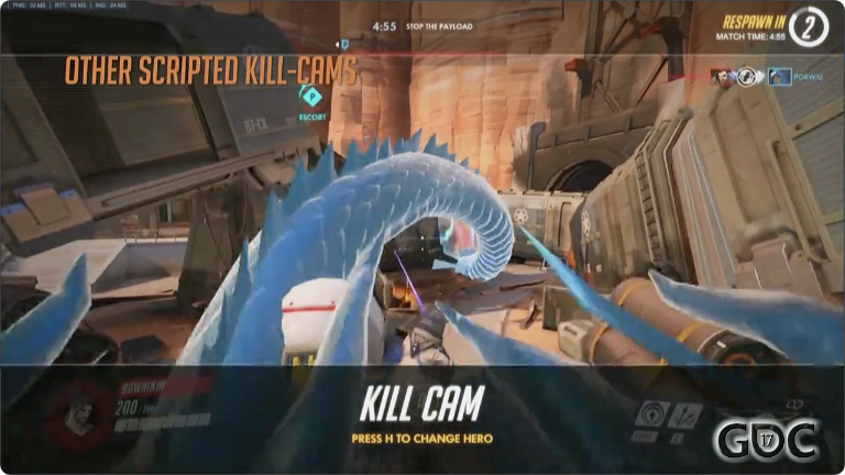 最后,实现一个阵亡镜头也会很困难,因为需要客户端快照以及快播机制。按理说如果游戏支持录像文件的话,快播自然就能做到,不过Overwatch并没有这一点。