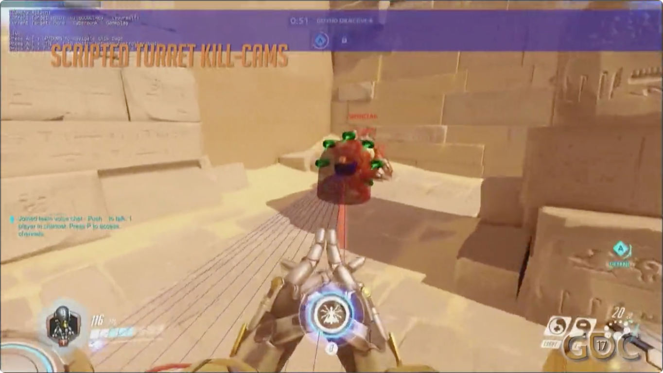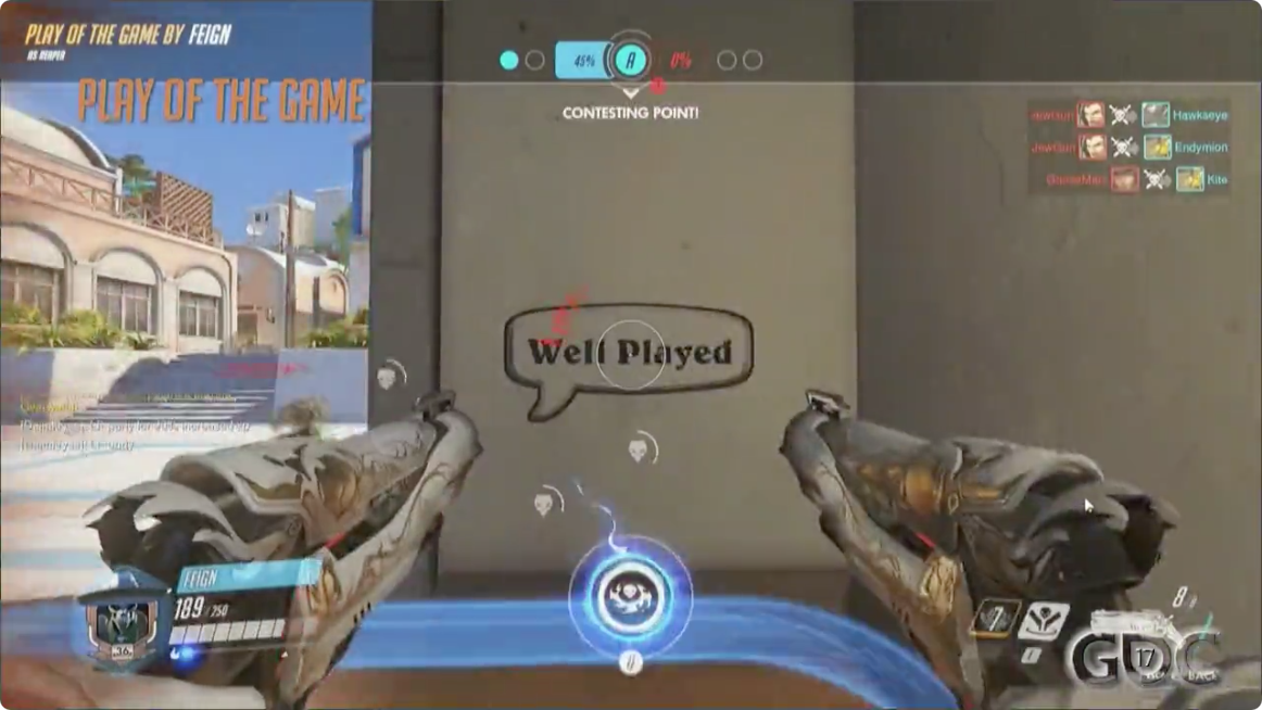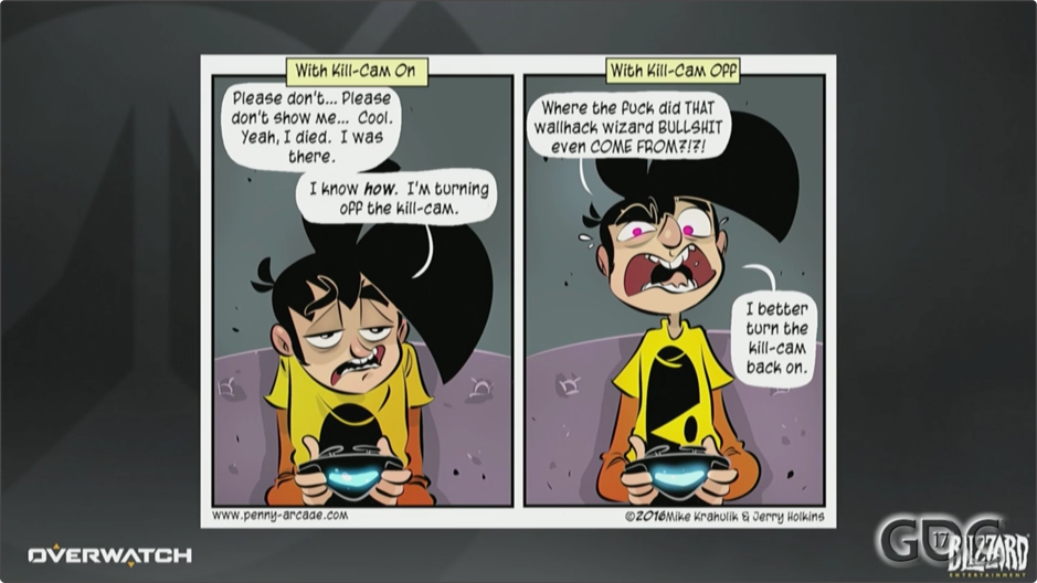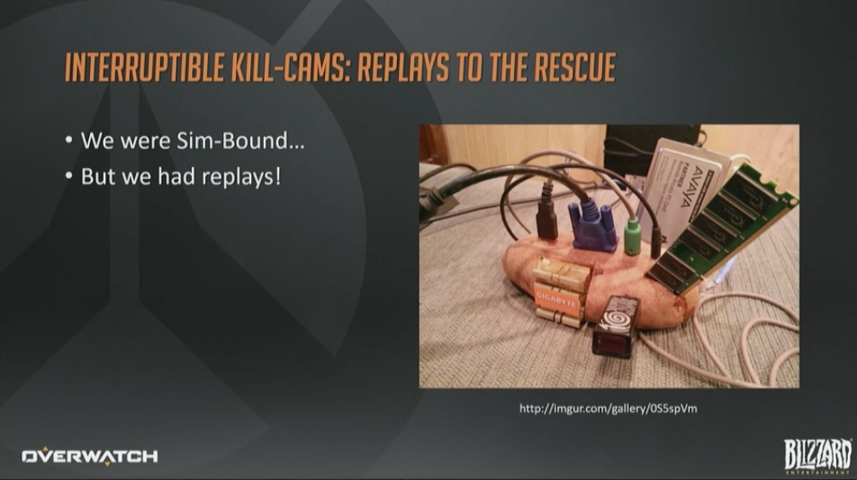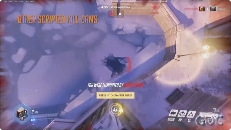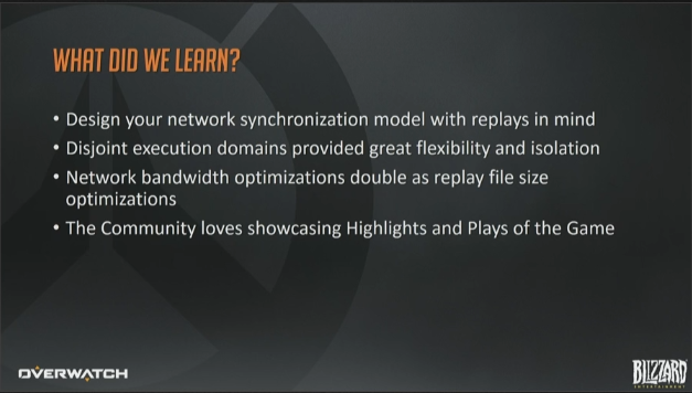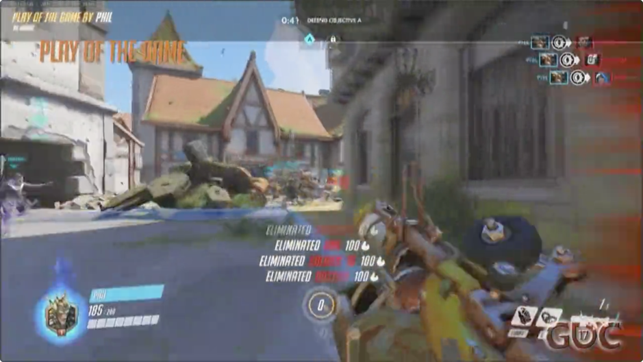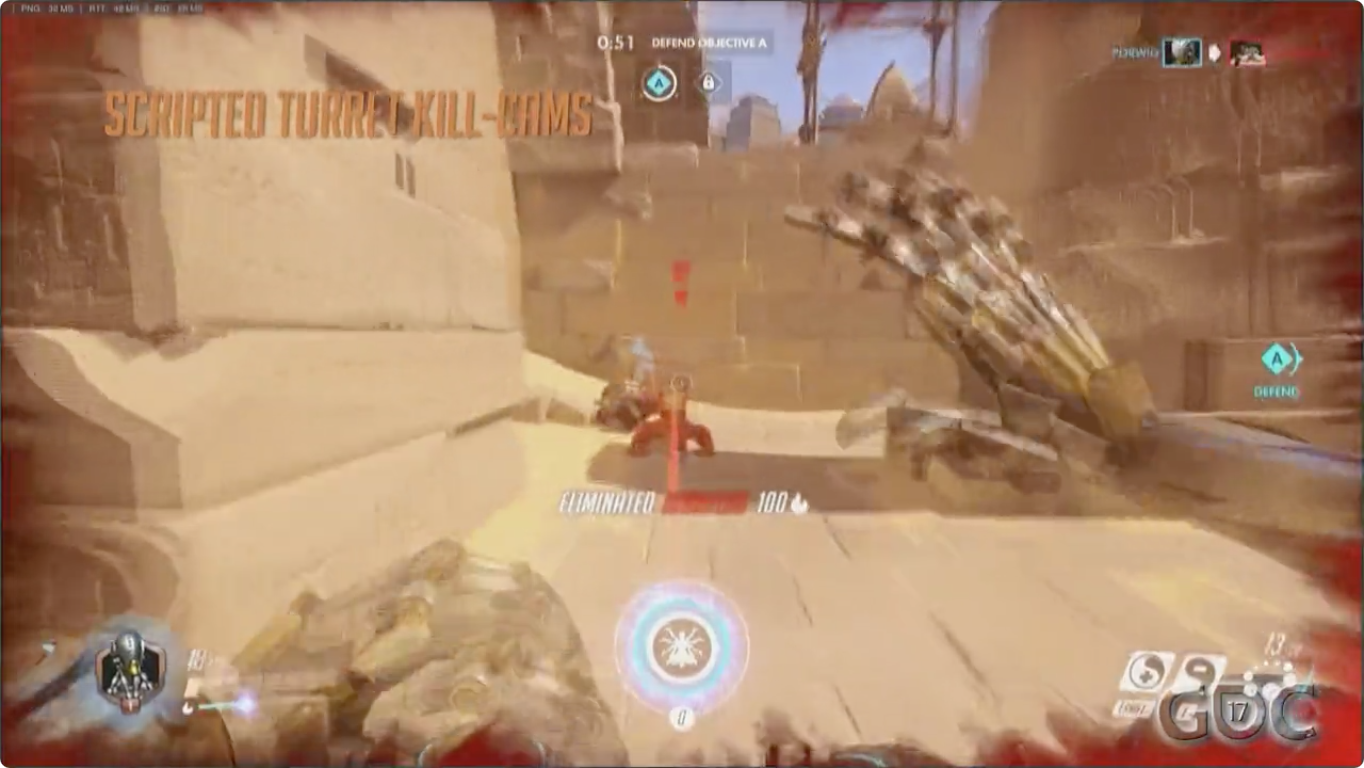 最后,实现一个阵亡镜头也会很困难,因为需要客户端快照以及快播机制。按理说如果游戏支持录像文件的话,快播自然就能做到,不过Overwatch并没有这一点。