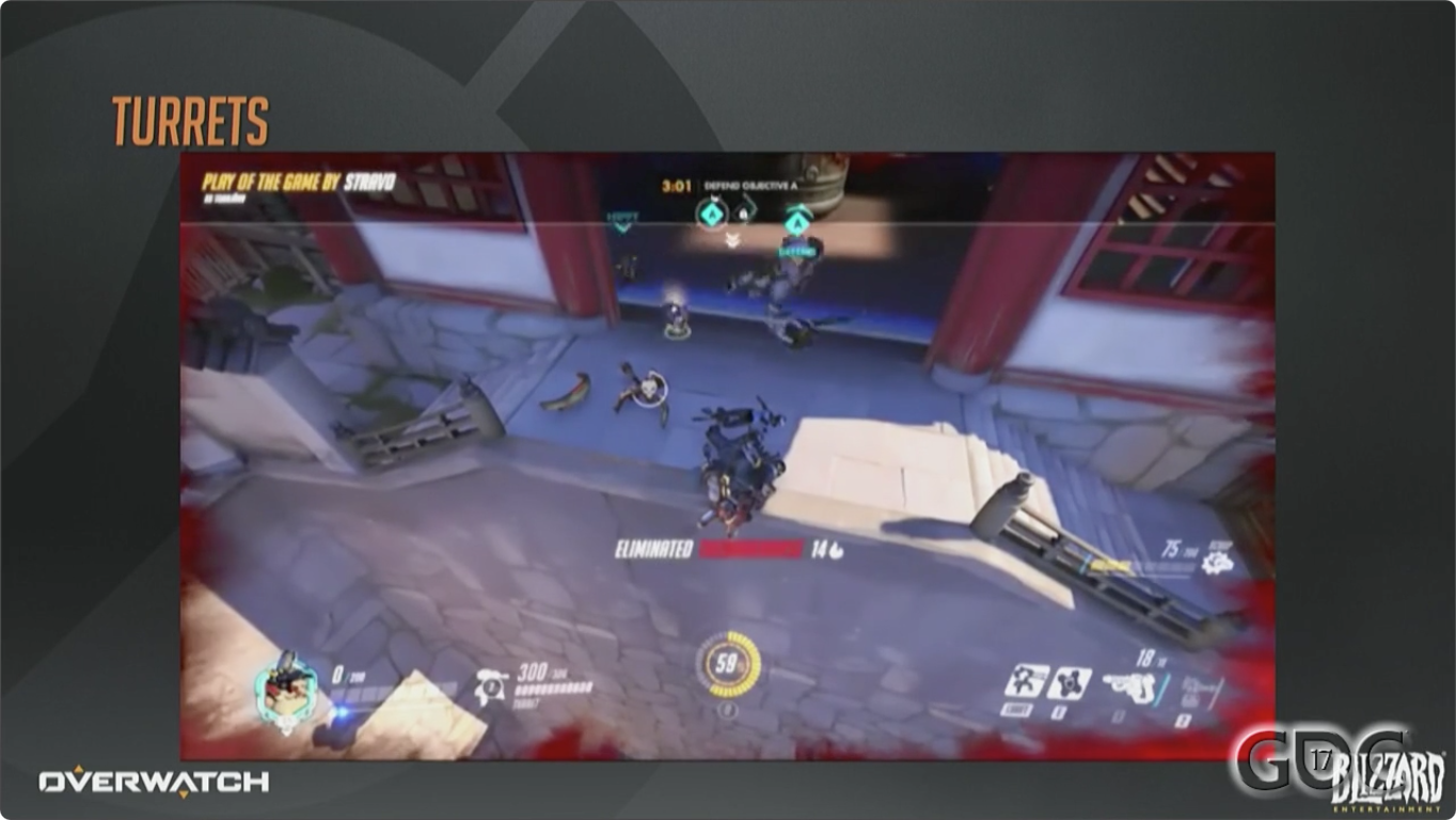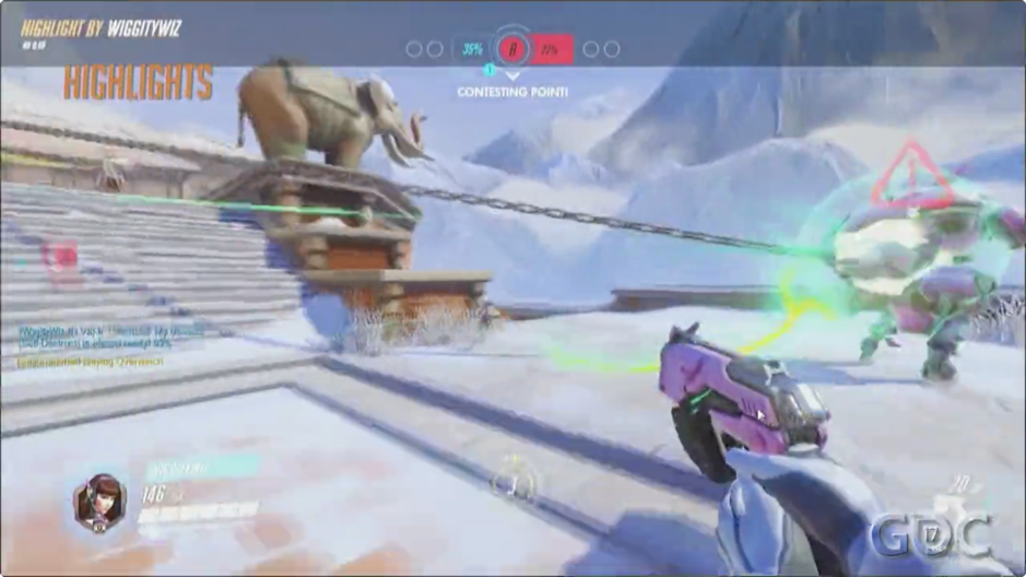 真的很滑稽,这段视频是从beta版来的,那时候我们还没修复这个bug呢。后来我们就不再把全场最佳送给死掉的英雄了,也就解决了这个问题。(译注,守望先锋最初的版本确实有这类全场最佳镜头,也是十分搞笑)