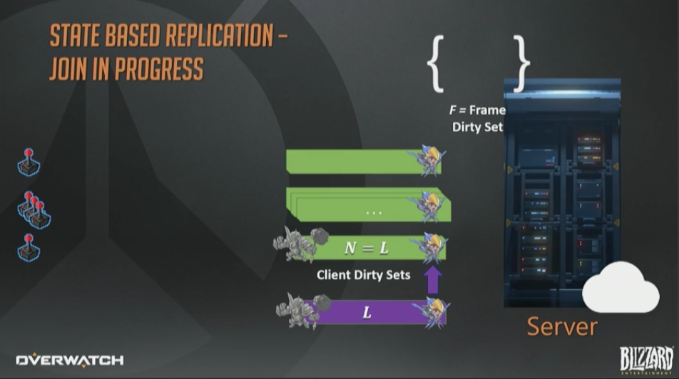 你猜对了,新玩家连上后,我们会把它的初始脏状态集合设置为“永久”脏集合L,这里的设置就是字面意义上的赋值。正常的打包流程最终会把所有变化都下发给这个客户端直到它赶上最新的进度。