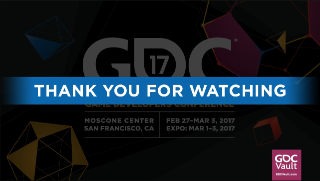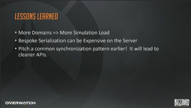 顺便给我的同事们打个广告,如果你对Overwatch游戏架构、网络同步的其他方面也感兴趣的话,Tim Ford和Dan Reid的分享刚好与我的互补。他们的已经结束,可以在GDCVault.com上收看(译注:另外一篇GDC2017 Networking Scripted Weapons and Abilities in Overwatch在此)。