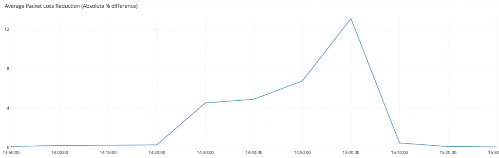 During the mitigation the average packet loss reduction was an absolute reduction of 12 points of packet loss. No, not a reduction of 12%, a reduction of 12 points. In other words, a conversion from totally unplayable to playable.