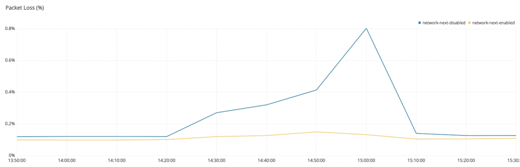Now you may look at this and think, oh, it’s just 0.8% packet loss at peak, it’s not that bad… but this is an average across all players, and only some portion of players were affected. For these players, the effect was much more severe: