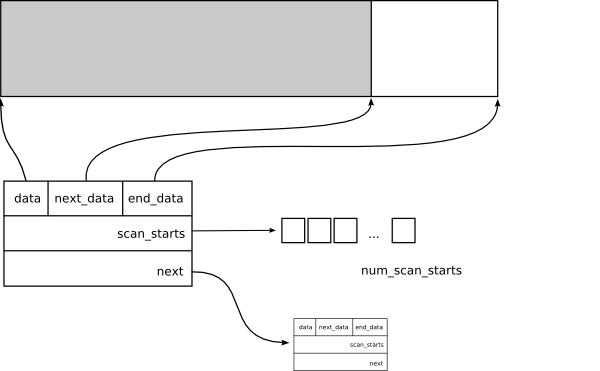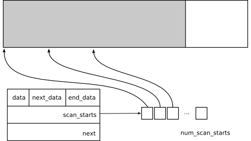 The scan_starts array is used as an optimization to minimize the memory that must be scanned for pinned objects, this is discussed in the Conservative Scanning section.