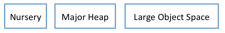 SGen uses three heaps to allocate your objects: the nursery, the major heap and the large object space.