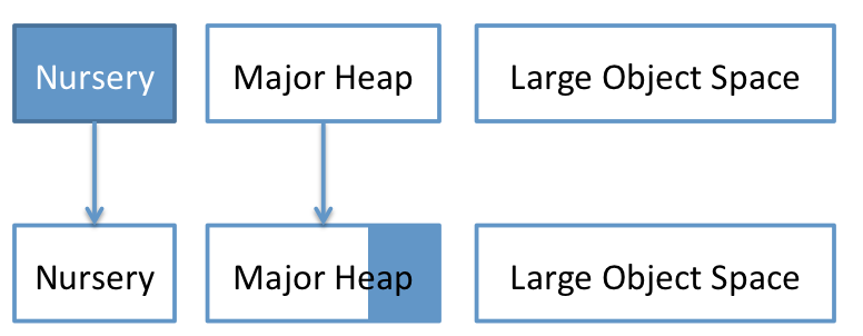 For users familiar with the terminology used in other corners of the industry: The Nursery is the “Young Generation” while our “Major Heap” corresponds to the “Old Generation”.